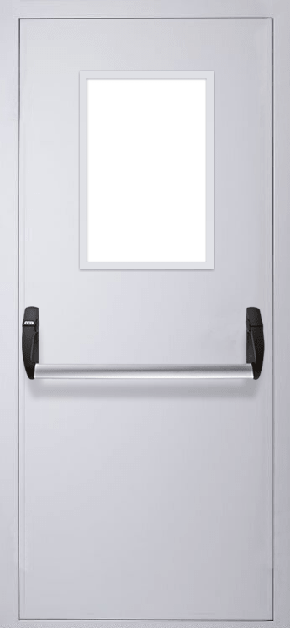 Однопольная противопожарная дверь «Антипаника» со стеклом (RAL 7035)