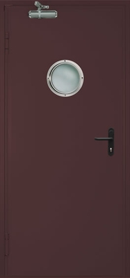Однопольная противопожарная дверь c круглым стеклом (RAL 7035)